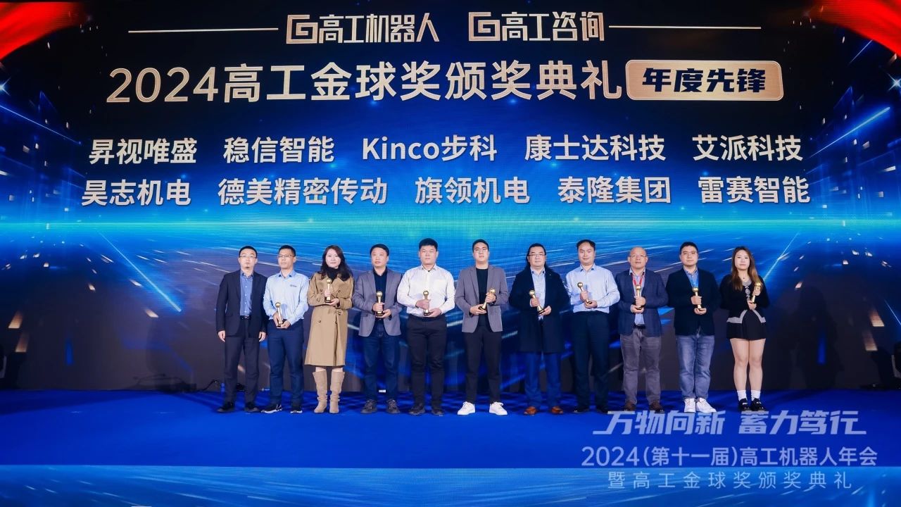 2024年12月21日晚,以“向新向智 中國力量”為主題的2024(第十一屆)高工機器人年會暨高工金球獎頒獎典禮在深圳機場凱悅酒店圓滿落幕。泰隆集團受邀攜BXJ系列精密減速機驚艷亮相展會,憑借在產品技術創新以及智能工廠建設方面的卓越表現,公司在典禮上喜獲“年度先鋒企業獎”。