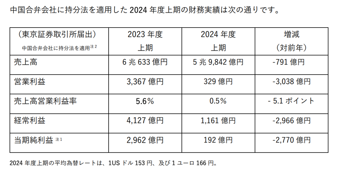 相比之下,本田汽車還好過一點。財報顯示,2024上半財年本田汽車營收同比增長12.4%至10.7976萬億日元,營業(yè)利潤同比增加6.6%至7426億日元,稅前利潤同比下降15.6%至7419億日元,營業(yè)利潤率從同期的7.2%降至6.9%;報告期內,本田汽車在日本和美國銷量均有所增長,但在中國市場卻伴隨著新能源汽車賽道的內卷以及價格戰(zhàn)的日益激烈,銷量出現(xiàn)較大幅度下滑。