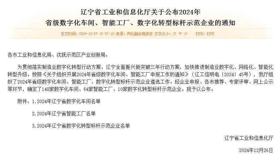 12月26日,遼寧省工業和信息化廳發布《2024年省級數字化車間、智能工廠、數字化轉型標桿示范企業名單》,通用技術沈陽機床獲評2024年省級智能工廠、數字化轉型標桿示范企業,標志著公司在推進制造業數字化、網絡化、智能化方面取得了顯著成效。