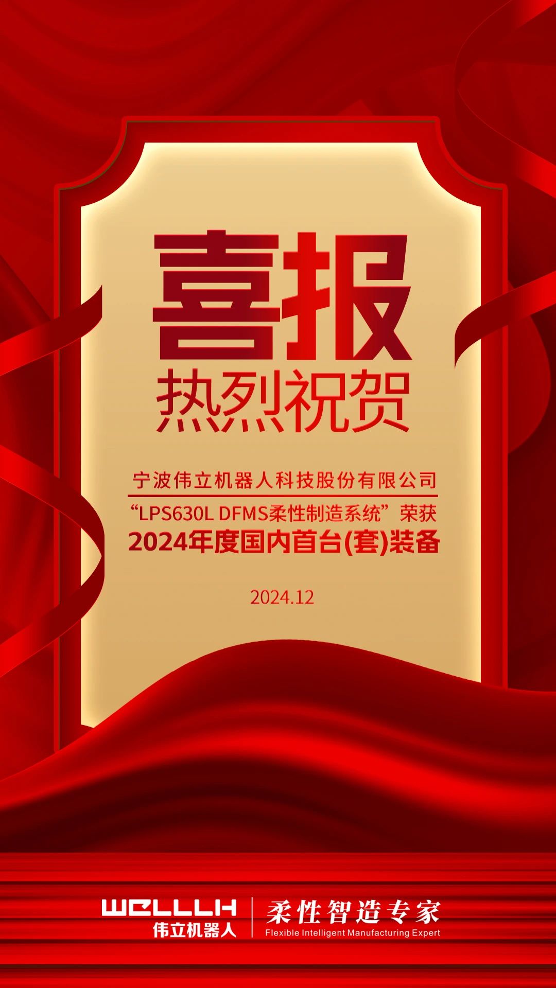 寧波偉立機器人科技股份有限公司“LPS630L DFMS柔性制造系統”榮獲2024年度國內首臺(套)裝備。