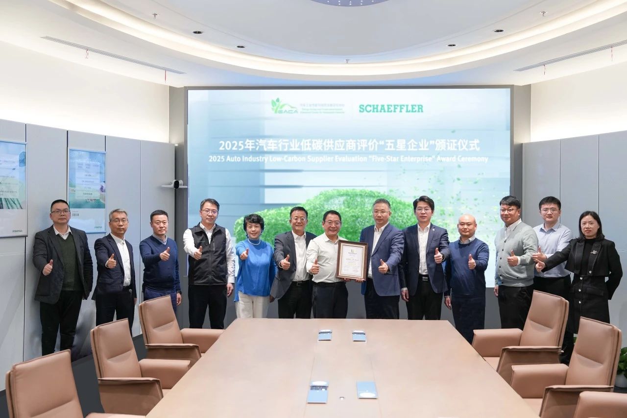 1月15日,舍弗勒憑借在碳管理及脫碳行動方面的卓越表現,榮獲由汽車工業節能與綠色發展評價中心授予的2025年汽車行業低碳供應商評價“五星企業”稱號,成為汽車行業首家獲得此最高評級的供應鏈企業。