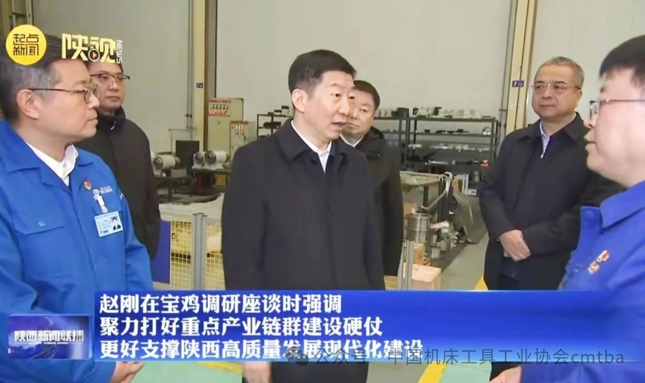 2025年2月7日,陜西省省長(zhǎng)趙剛到寶雞機(jī)床集團(tuán)有限公司調(diào)研。省人大常委會(huì)副主任、寶雞市委書(shū)記楊廣亭,省政府副秘書(shū)長(zhǎng)曹源,省發(fā)展改革委主任孫喜民,省工業(yè)和信息化廳廳長(zhǎng)韓宏琪,寶雞市市長(zhǎng)王勇等省市相關(guān)負(fù)責(zé)人陪同調(diào)研。集團(tuán)公司黨委書(shū)記、董事長(zhǎng)李清耀匯報(bào)了企業(yè)生產(chǎn)經(jīng)營(yíng)、產(chǎn)品研發(fā)、市場(chǎng)開(kāi)拓、“兩化”融合、重點(diǎn)項(xiàng)目和產(chǎn)業(yè)鏈建設(shè)等情況。