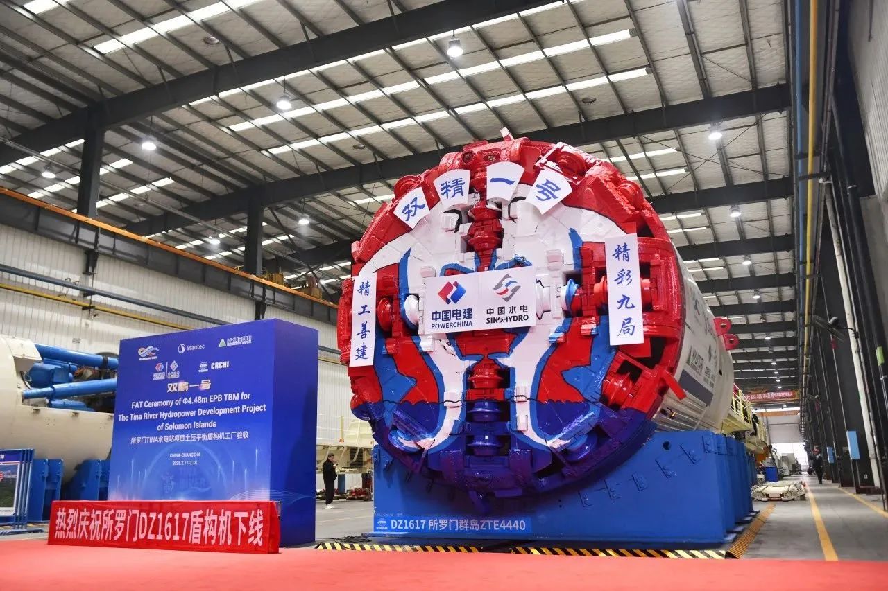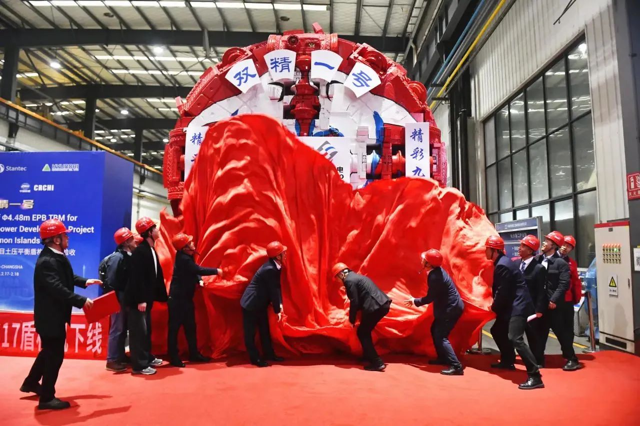 2月17日,開挖直徑為4.48米的盾構(gòu)機(jī)“雙精一號(hào)”在鐵建重工長(zhǎng)沙第二產(chǎn)業(yè)園下線,將用于所羅門群島蒂娜水電站引水隧洞建設(shè),這是國(guó)產(chǎn)盾構(gòu)機(jī)首次出口所羅門群島。