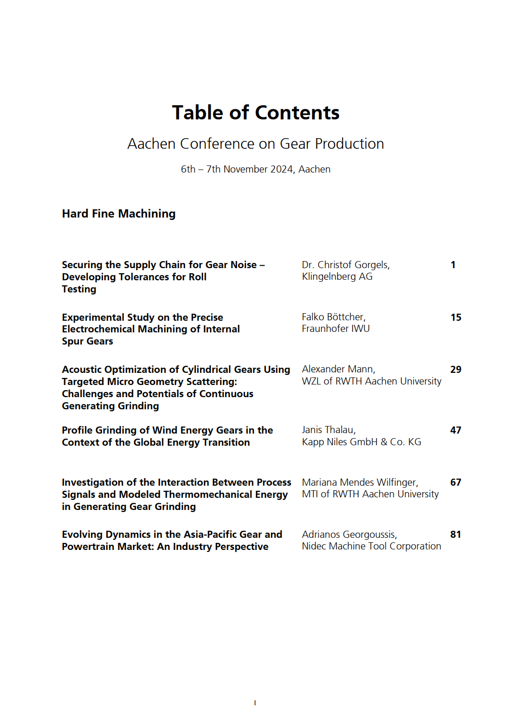 [編者按] 德國亞琛齒輪生產技術論壇(Aachen Forum on Gear Production (AFGP))是個非常有特色、緊扣當代齒輪前沿制造技術的會議。固定在亞琛每年11月召開,已連辦四屆。雖然才舉辦過四次,但已在齒輪行業產生重大影響,成為了世界齒輪制造技術的風向標。2024年這次論壇專門面向齒輪技術創新(Innovations in Gear Technology),安排了系列報告,報告個個精彩,反映了齒輪技術的前沿研究熱點和發展方向。此次會議20個報告如下。