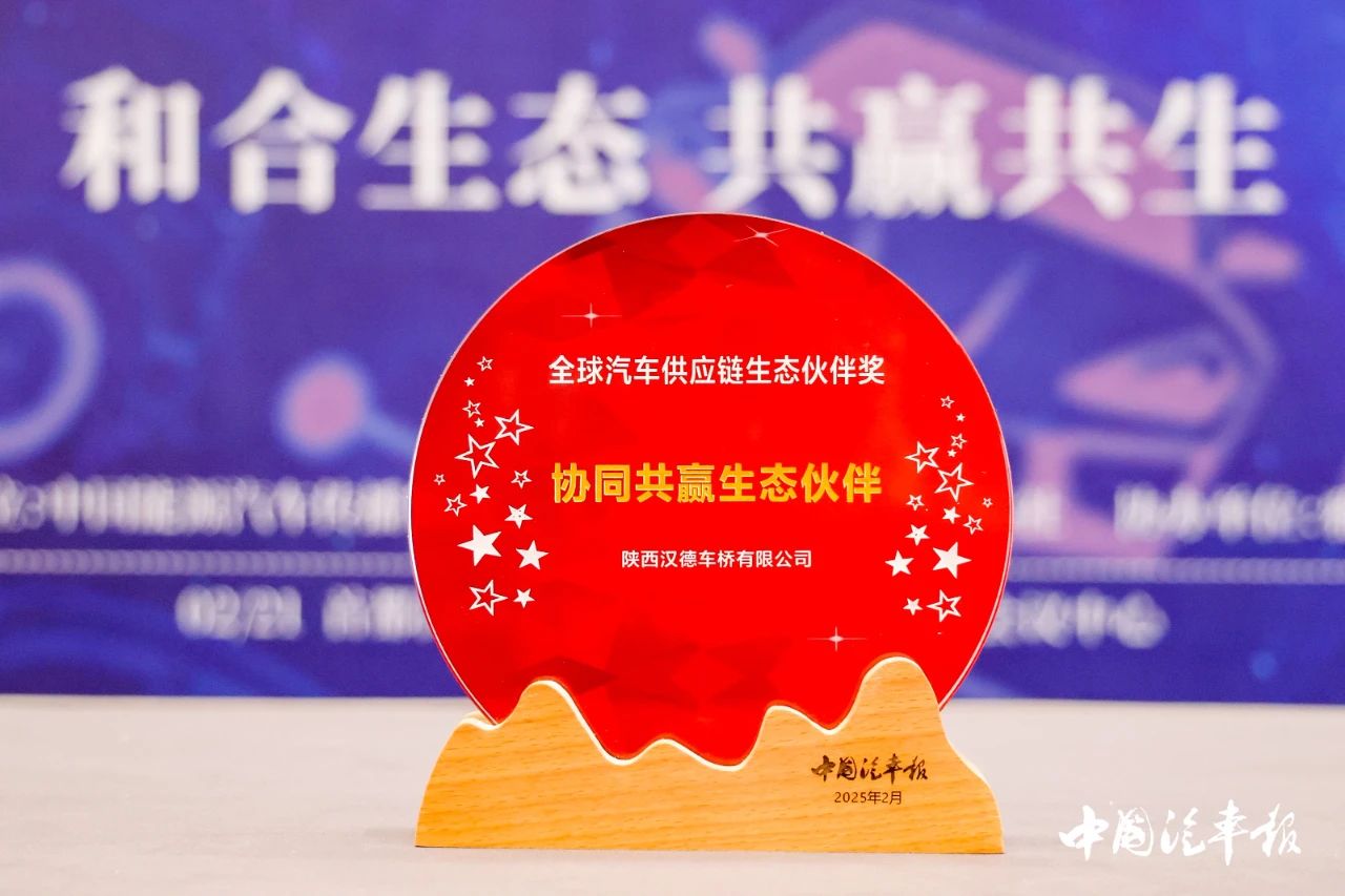 2月21日,《中國汽車報》社主辦的2025汽車供應鏈新生態大會中,漢德車橋憑借其在產業鏈協同創新、綠色轉型及全球化布局中的卓越貢獻,榮獲“協同共贏生態伙伴獎”。這一殊榮不僅是對漢德車橋行業領導地位的認可,更彰顯了其作為“鏈主”企業在推動商用車行業高質量發展中的責任與擔當。