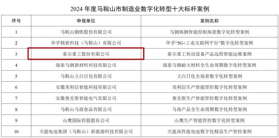此次入選十大案例,標(biāo)志著泰爾數(shù)字化轉(zhuǎn)型成果獲得政府與行業(yè)的高度認可。作為冶金行業(yè)裝備制造領(lǐng)域領(lǐng)軍企業(yè)之一,泰爾將持續(xù)深化數(shù)字技術(shù)與實體制造的融合創(chuàng)新,助力馬鞍山打造全國智慧制造新高地,為制造業(yè)高質(zhì)量發(fā)展貢獻力量。