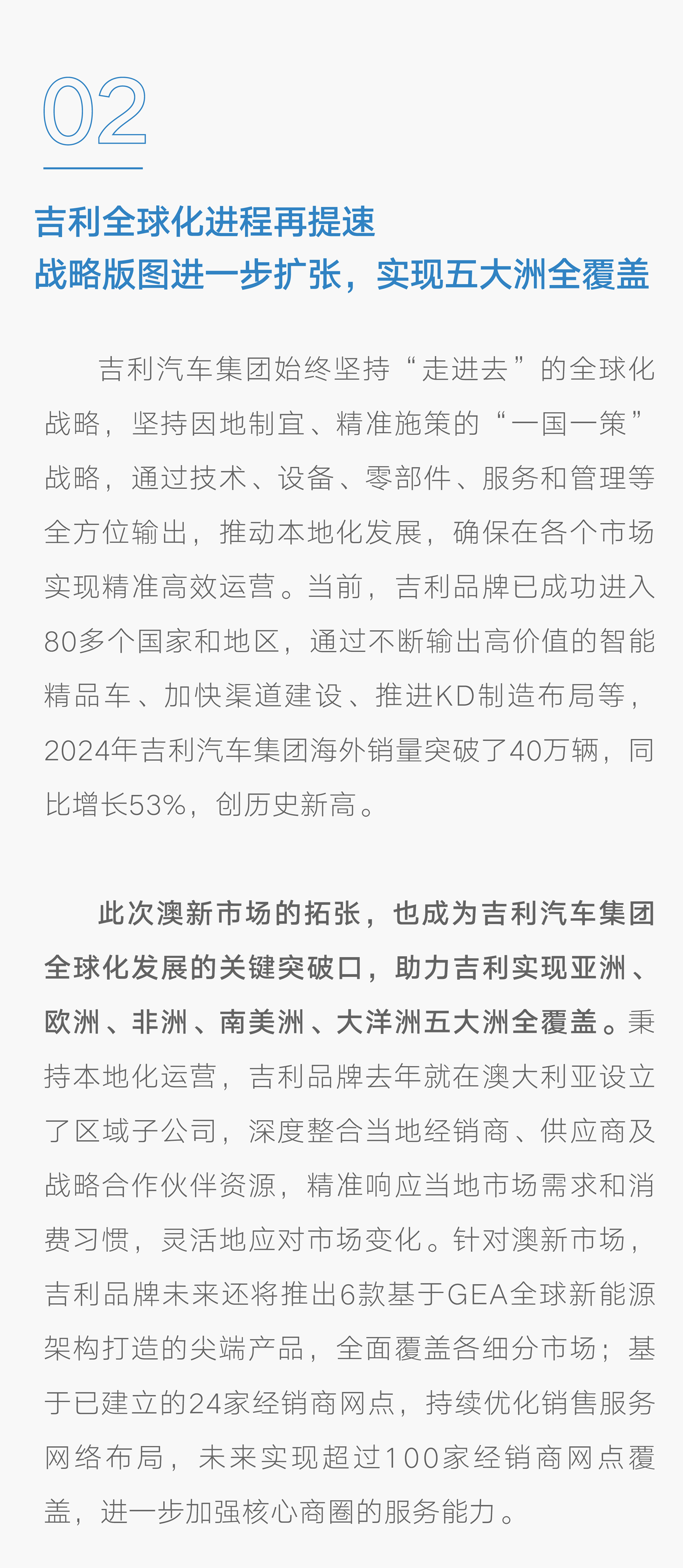 進軍澳新市場,吉利汽車集團全球化戰(zhàn)略版圖再擴張,實現(xiàn)五大洲全覆蓋