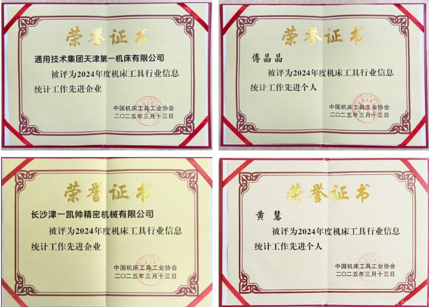 中國機床工具工業協會對2024年度機床工具行業信息統計工作先進企業及先進個人進行表彰。天津一機及津一凱帥獲評先進企業,傅晶晶及黃慧獲評先進個人。
