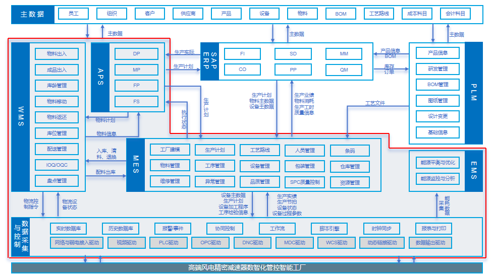 “高端風(fēng)電精密減速器數(shù)智化智能工廠”總投資6億元,占地面積138畝,總建筑面積6萬余平米,通過信息技術(shù)與制造業(yè)的深度融合,實(shí)現(xiàn)了從工廠建設(shè)、產(chǎn)品研發(fā)到模式創(chuàng)新的11個(gè)智能制造環(huán)節(jié)和19個(gè)智能制造場景全面覆蓋。全工廠實(shí)現(xiàn)5G網(wǎng)絡(luò)全覆蓋,對(duì)所有智能化設(shè)備進(jìn)行聯(lián)網(wǎng)及通訊,引入AI工具優(yōu)化開發(fā)流程,部署數(shù)字孿生技術(shù),構(gòu)建了從設(shè)備到園區(qū)的全維度數(shù)字化映射,顯著提升了生產(chǎn)協(xié)同效率。通過運(yùn)用MES、SAP系統(tǒng)構(gòu)建智能排程,實(shí)現(xiàn)多工序聯(lián)動(dòng)排產(chǎn)與資源動(dòng)態(tài)調(diào)配,大幅增強(qiáng)生產(chǎn)柔性化能力,打造激光+視覺導(dǎo)航AGV小車廠區(qū)無人物流、WMS智能倉儲(chǔ)系統(tǒng)和可視化集控調(diào)度計(jì)劃管控中心,實(shí)現(xiàn)生產(chǎn)數(shù)據(jù)智能管理。