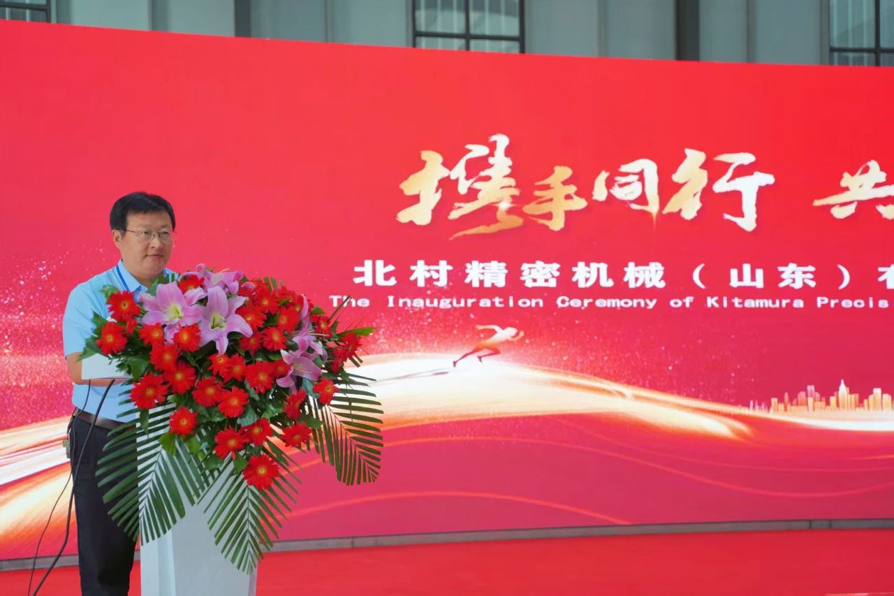 儀式在熱烈的氛圍中拉開帷幕,普集街道辦書記陳濤先生首先致辭。陳書記對北村精密機械(山東)有限公司的落成表示熱烈祝賀,他指出:“北村機械株式會社作為全球領先的精密機械制造企業,其技術中心和應用中心的成立,將為章丘區乃至整個山東省的智能制造產業注入強大動力。我們期待與北村機械攜手,共同推動區域經濟的高質量發展。”