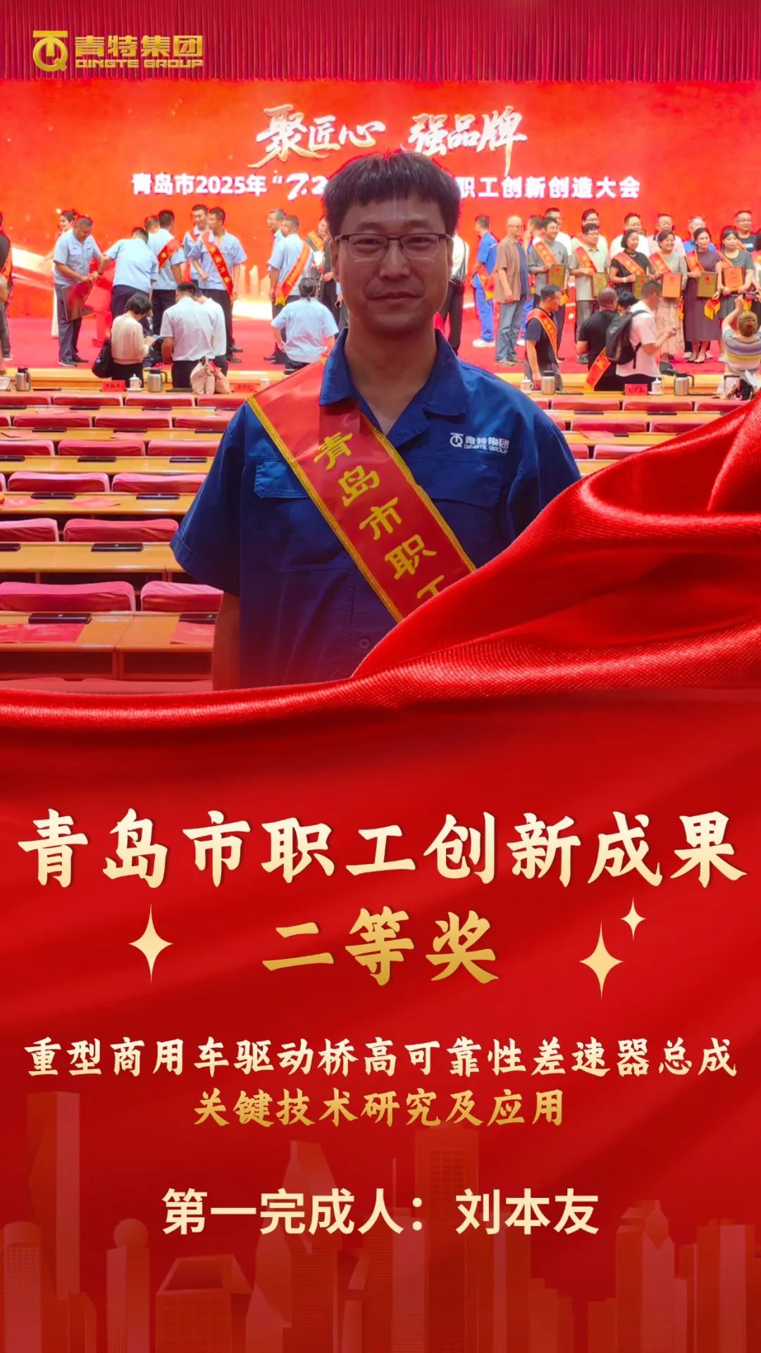 劉本友作為第一完成人研發的"重型商用車驅動橋高可靠性差速器總成關鍵技術研究及應用"項目,攻克了多項技術難題,顯著提升了產品性能和市場競爭力,榮獲"青島市職工創新成果二等獎"。