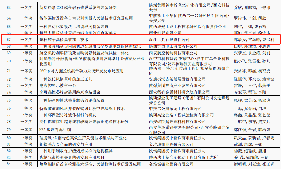 近日,2025年陜西省企業(yè)“三新三小”創(chuàng)新競(jìng)賽評(píng)審結(jié)果揭曉,漢江工具公司“螺桿轉(zhuǎn)子高精高效加工技術(shù)”項(xiàng)目獲創(chuàng)新競(jìng)賽一等獎(jiǎng)。