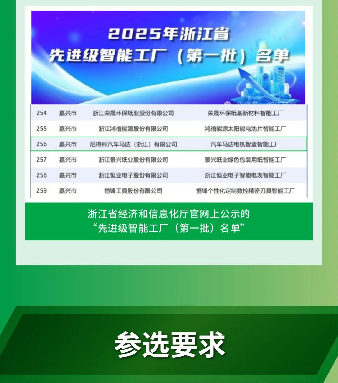 尼得科集團(tuán)旗下的尼得科汽車馬達(dá)(浙江)有限公司積極響應(yīng)地方政府號(hào)召,推進(jìn)智能工廠建設(shè),著力提升生產(chǎn)過程的數(shù)字化管理和智能化水平,榮獲2025年浙江省“先進(jìn)級(jí)智能工廠”稱號(hào)。