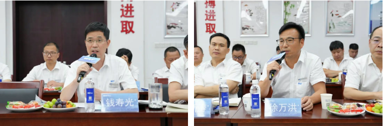 數智化制造總監錢壽光作數字化推進實施情況發言,股份公司副總監徐萬洪作產品戰略實施情況發言。