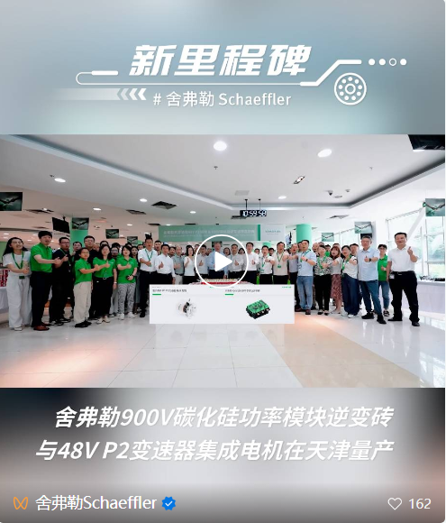 近日,舍弗勒電驅動領域兩個項目共同迎來了新的里程碑:900V碳化硅功率模塊逆變磚與48V P2變速器集成電機產品在天津基地正式投產。兩個項目的量產啟動,不僅為舍弗勒在多元驅動技術賽道的布局增添了強勁動力,也彰顯了合并給舍弗勒帶來的協同效應——通過資源垂直整合,為本土和全球的客戶帶來了更豐富、更有競爭力的產品技術。