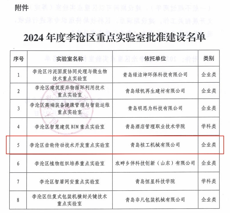 近日,青島核工機械有限公司成功獲批2024年度李滄區“齒輪傳動技術開發重點實驗室”,并再度入選2025年度“專精特新”中小企業名錄,標志著企業在高端裝備制造領域的綜合實力再上新臺階。