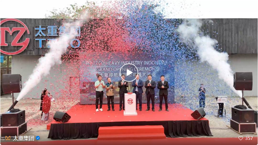 “3、2、1……”在全場的期待中,領導嘉賓共同按下啟動鍵,大屏幕華麗展開,“太重印尼有限公司盛大開業”字樣振奮人心。與此同時,象征太重品牌的紅藍配色禮花噴薄而出,在空中交織飛舞,熱烈昂揚的氣氛被推向最高潮。