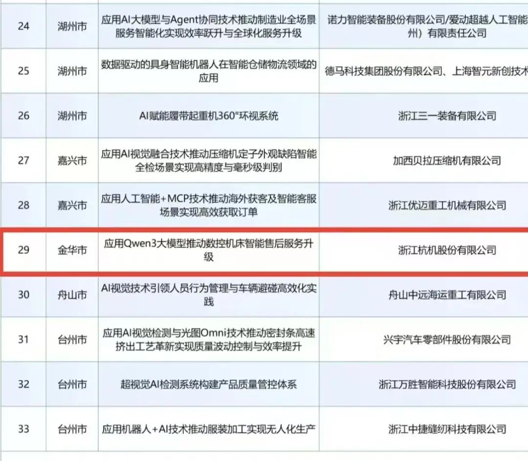 日前,2025年首批浙江省人工智能賦能制造業典型案例名單揭曉。我縣的浙江杭機股份有限公司,憑借其在智能制造領域的扎實創新和顯著成效成功入選,成為金華市該領域唯一獲此榮譽的企業。