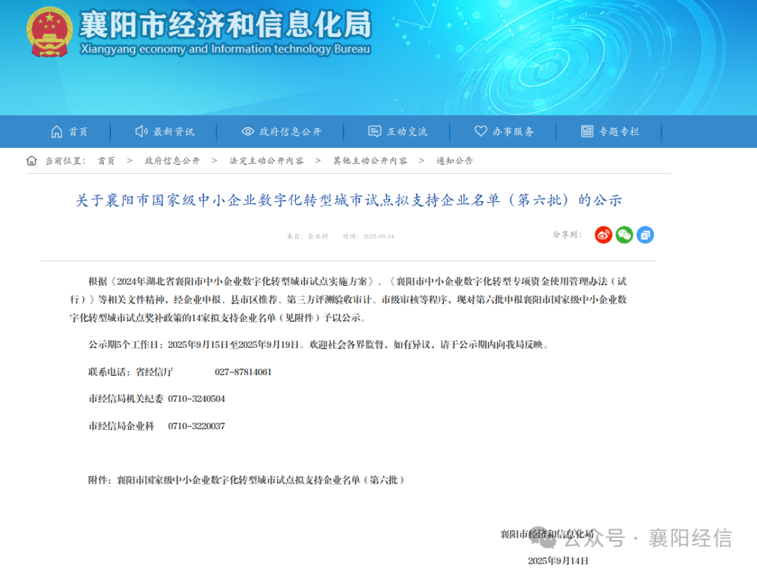 襄陽市國家級中小企業數字化轉型城市試點