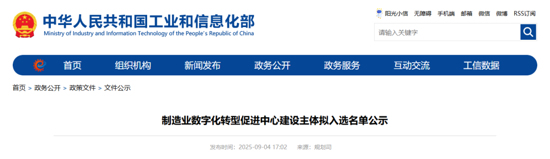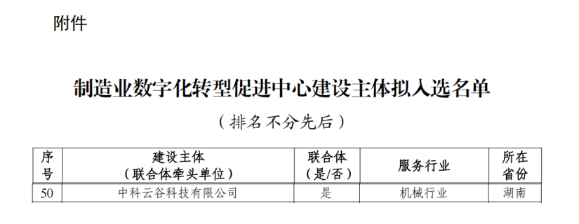 ▲中聯重科中科云谷入選全國首批制造業數字化轉型促進中心建設主體名單