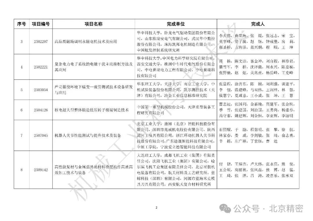 附2025年度“機械工業(yè)科學技術(shù)獎”擬授獎項目目錄