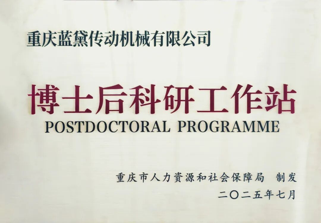 9月26日,重慶市博士后管理辦公室舉行市級博士后科研工作站授牌儀式。重慶藍黛傳動機械有限公司作為該批新設工作站的重要代表,在現場正式獲頒牌匾。