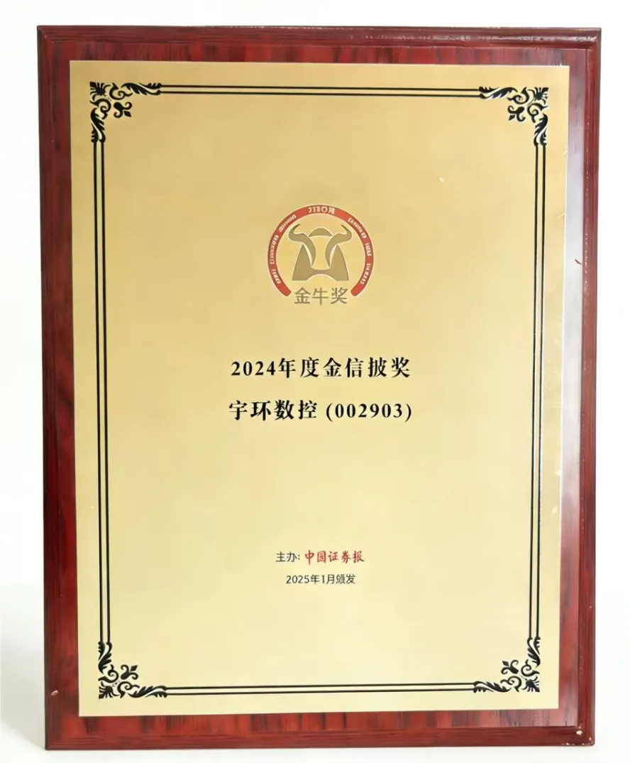 2025年12月6日和7日,宇環數控在超過5400家A股上市公司中脫穎而出,憑借在信息披露和技術創新方面的卓越表現,榮獲《中國證券報》——“上市公司金牛獎(金信披獎)”以及《上海證券報》——“科技創新獎”。兩項大獎由《中國證券報》主辦的“2025科創投資大會”以及《上海證券報》主辦的“2025上證(巢湖)上市公司高質量發展大會”分別評選產生。《中國證券報》和《上海證券報》均為新華社主管主辦的上市公司指定法披媒體,是中國資本市場最具權威性和影響力的主流財經媒體,在資本市場具有重大影響力,兩家媒體主辦的活動備受資本市場矚目。