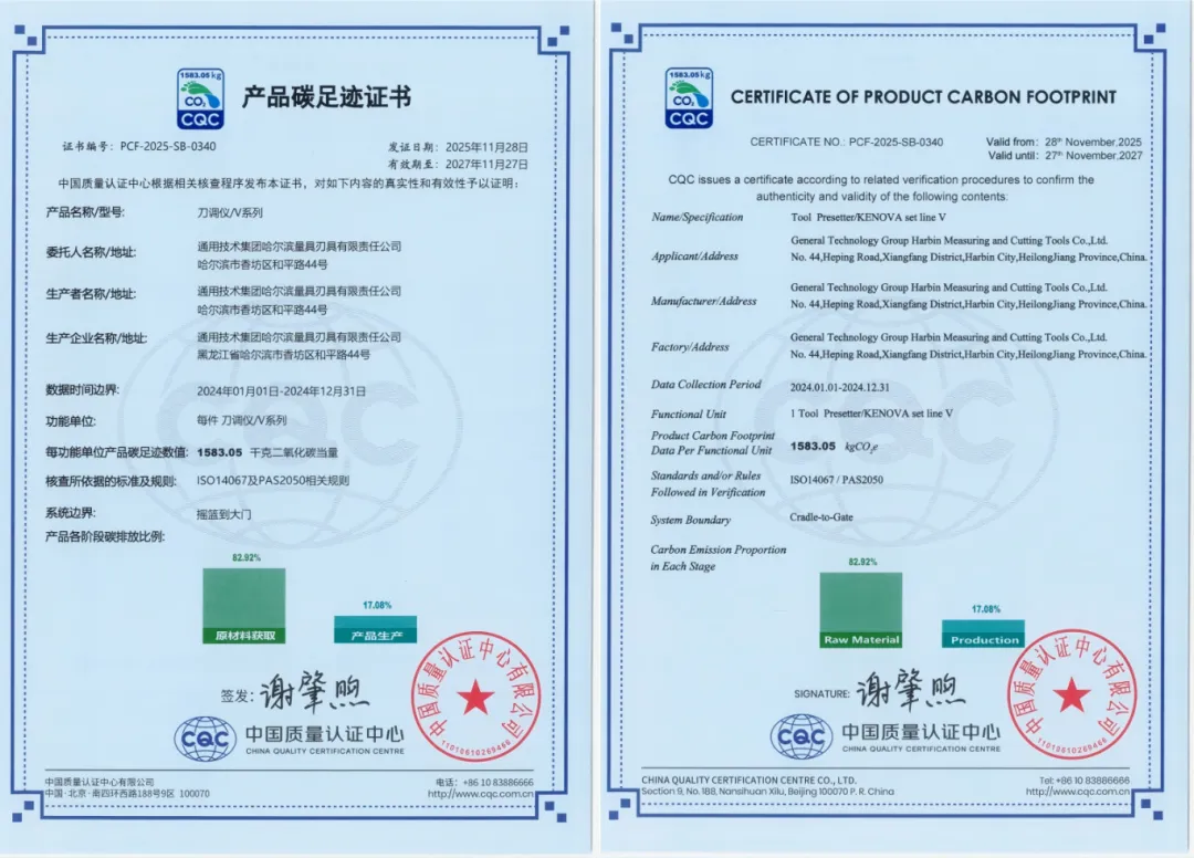 通用技術哈量公司SK系列數控刀柄和V系列刀調儀取得產品碳足跡認證