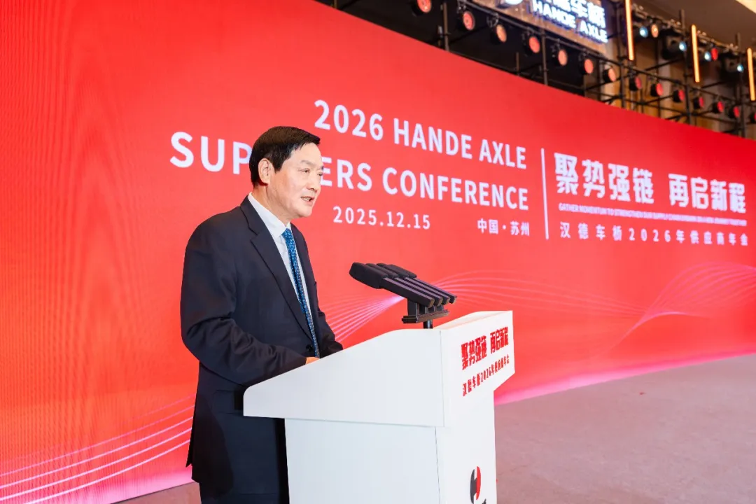 12月15日,陜西漢德車橋有限公司在蘇州召開2026年供應(yīng)商年會。本次大會以“聚勢強鏈·再啟新程”為主題,與廣大供應(yīng)商伙伴共同回顧“十四五”發(fā)展經(jīng)驗,探討在“十五五”期間,如何凝聚合力,進一步強化供應(yīng)鏈核心競爭力,在新征程上共繪發(fā)展宏圖。陜西重型汽車有限公司總經(jīng)理支保京,陜西漢德車橋有限公司黨委書記、總經(jīng)理王占朝出席大會并講話。大會由漢德車橋副總經(jīng)理王林主持。