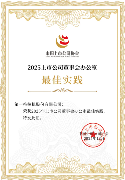 中上協(xié)發(fā)布“2025上市公司董辦最佳實踐”案例征集活動結(jié)果,本次評選中,一拖股份憑借扎實的履職實踐,成功入選“2025上市公司董辦最佳實踐案例”,這也是公司連續(xù)兩年獲得此獎項,標(biāo)志著公司董辦的專業(yè)能力與規(guī)范運作水平獲得權(quán)威認(rèn)可。