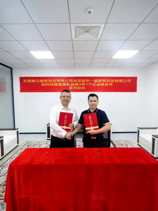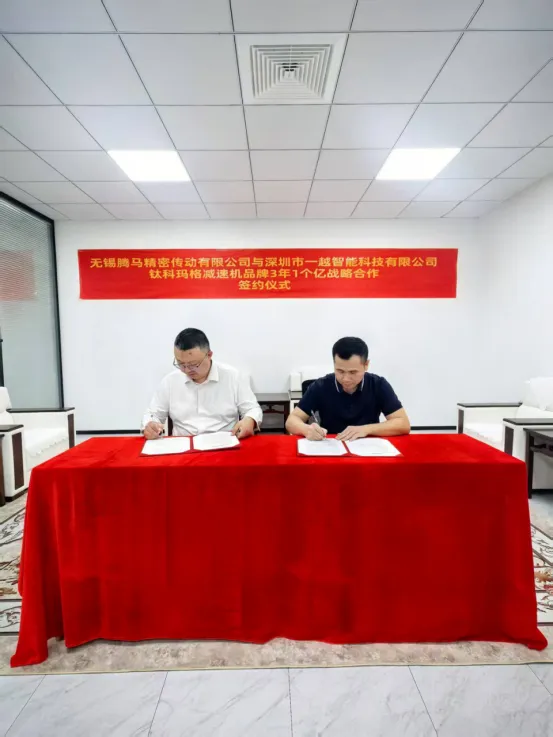 近日,無(wú)錫騰馬精密傳動(dòng)有限公司與深圳市一越智能科技有限公司正式達(dá)成戰(zhàn)略合作,雙方圍繞“鈦科瑪格”減速機(jī)品牌簽署為期三年、目標(biāo)價(jià)值一億元的戰(zhàn)略合作協(xié)議。這一強(qiáng)強(qiáng)聯(lián)合,不僅標(biāo)志著兩家企業(yè)在精密傳動(dòng)與智能科技融合上邁出關(guān)鍵一步,也為工業(yè)傳動(dòng)領(lǐng)域的高質(zhì)量發(fā)展注入新動(dòng)力。