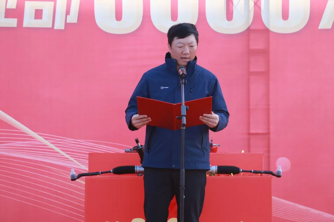 伴隨著歡樂與喜悅的氛圍,公司董事長張崇峻和總經理余大進共同上臺,為第3000萬臺轉向器的下線儀式進行揭幕。這不僅是對過去努力與成就的慶祝,更是對未來征程的期許與啟航。