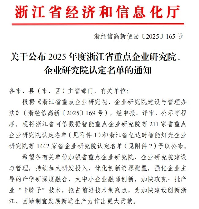 榮登2025年度浙江省企業(yè)研究院認(rèn)定名單