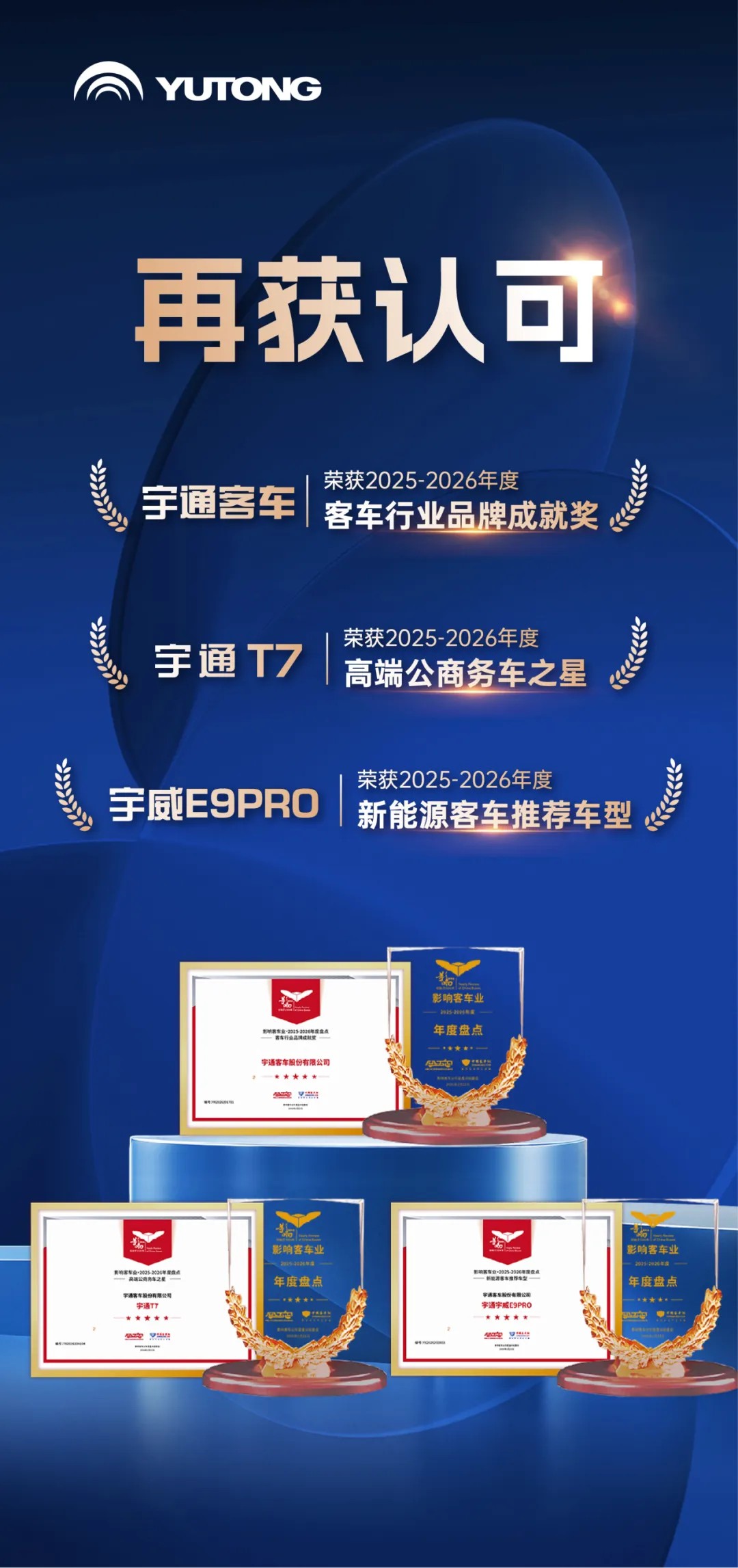 會(huì)上,宇通客車憑借品牌影響的深厚積淀,以及對(duì)行業(yè)趨勢(shì)的精準(zhǔn)洞察與技術(shù)產(chǎn)品的持續(xù)深耕,收獲三項(xiàng)榮譽(yù):宇通客車蟬聯(lián)“客車行業(yè)品牌成就獎(jiǎng)”、宇通T7榮膺“高端公商務(wù)車之星”、宇威E9PRO入選“新能源客車推薦車型”,展現(xiàn)了宇通客車出色的品牌影響力和產(chǎn)品創(chuàng)新力。