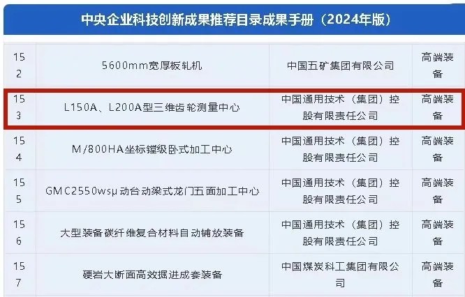 1月23日, 國務院國資委發布《中央企業科技創新成果推薦目錄成果手冊(2024年版)》,通用技術哈量公司產品“L150A、L200A型三維齒輪測量中心”入選推薦目錄。