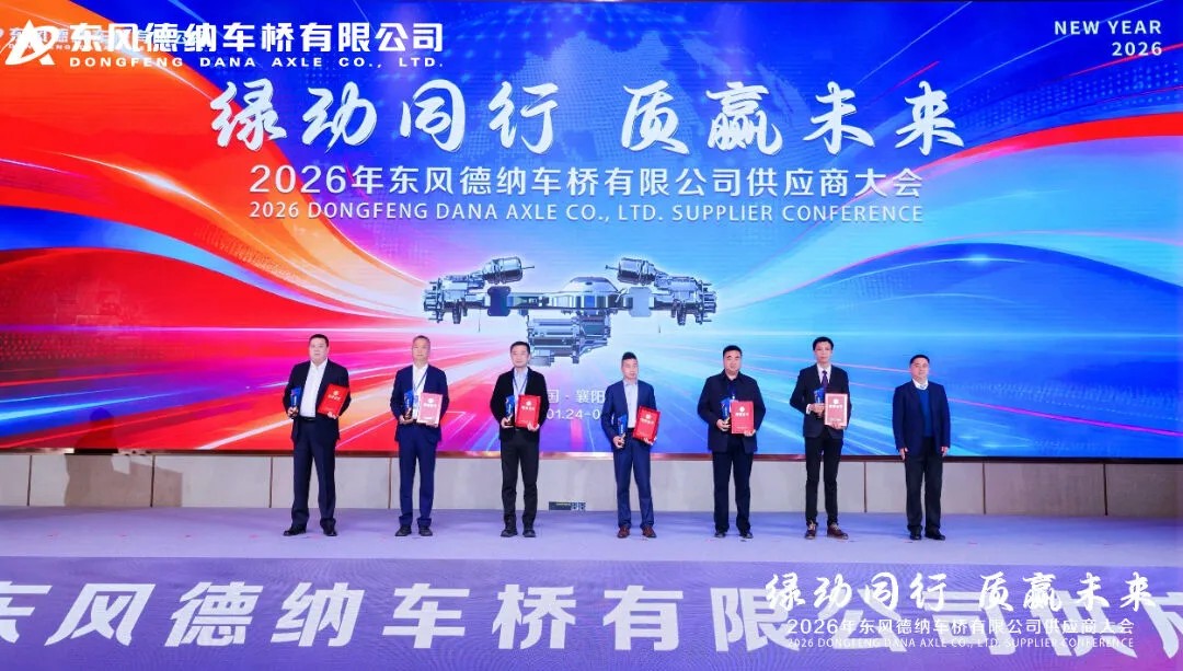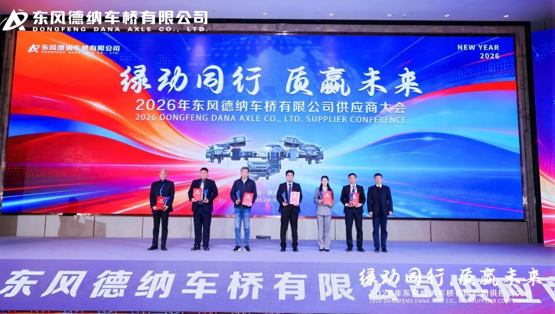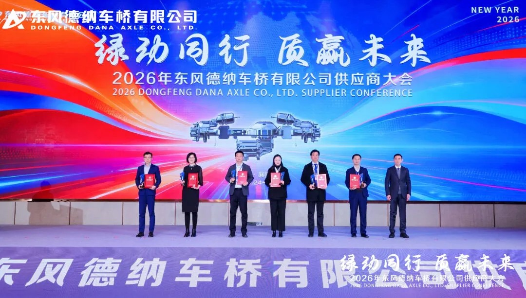 大會(huì)隆重表彰了2025年度優(yōu)秀供應(yīng)商。東風(fēng)德納車橋總經(jīng)理馮義,常務(wù)副總經(jīng)理陸定文,副總經(jīng)理嚴(yán)兵、王軍、張延泗為供應(yīng)商頒獎(jiǎng)。