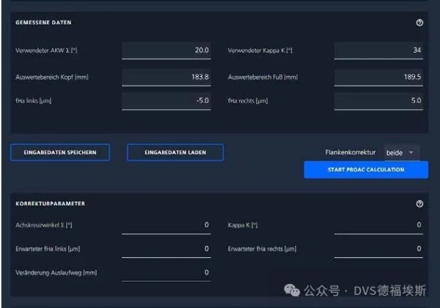 在實際應用中,當首件測量報告顯示fHa不理想,需要優化時,操作員只需將現有加工參數和fHa數值輸入ProAC界面,并選擇需要優化的齒面。點擊“開始ProAC計算”按鈕后,系統即可快速返回建議的加工參數。