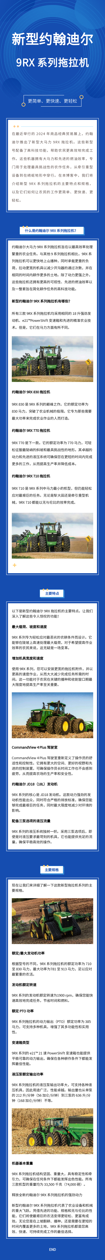 新型約翰迪爾 9RX 系列拖拉機介紹