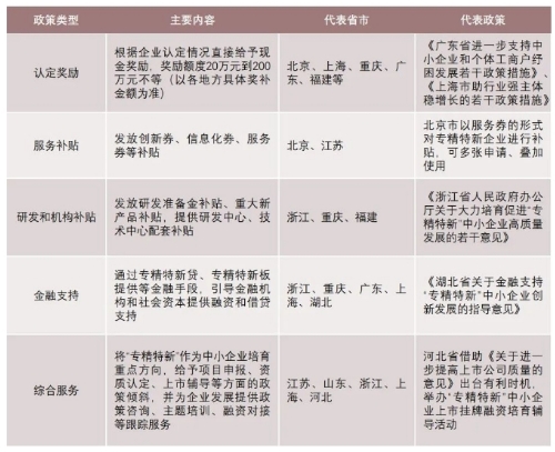 地方政策涵蓋了認定獎勵、服務補貼、研發和機構補貼、金融支持和綜合服務等方面,旨在通過多方資金流入解決目前企業面臨的融資難等資金困境,引導企業進行技術研發和產品創新,從而提高企業在細分市場的話語權和影響力。