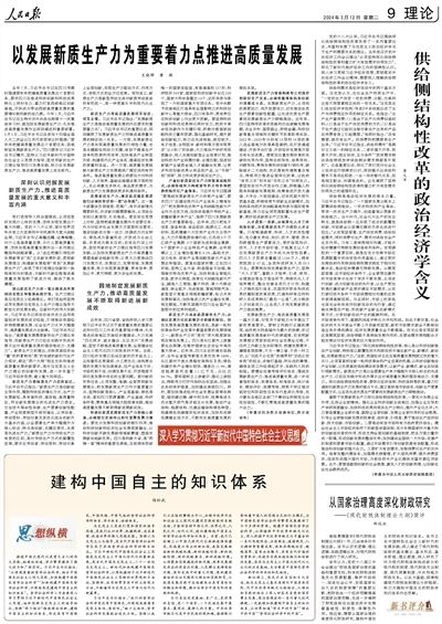 提出新質生產力這一重大概念具有深刻理論意義和重要實踐價值。生產力理論是馬克思主義經典理論。我們黨始終堅持運用發展的馬克思主義生產力理論指導不斷變化的發展實踐。在新時代的偉大實踐中,習近平總書記深刻總結并充分運用我國經濟發展的成功經驗,引領推動我國經濟持續健康發展、社會生產力水平大幅提升,高質量發展成為主旋律。習近平總書記指出:“高質量發展需要新的生產力理論來指導,而新質生產力已經在實踐中形成并展示出對高質量發展的強勁推動力、支撐力”。新質生產力的提出,反映我國經濟由“量”的積累轉向“質”的突破的新時代生產力現狀,順應“兩個大局”相互交織和推進高質量發展的新要求,是對馬克思主義生產力理論的創新和發展,進一步豐富了習近平經濟思想,意義重大而深遠。