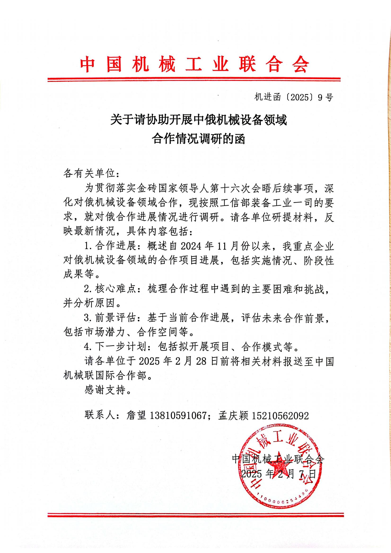 請(qǐng)各單位于2025年2月28日前將相關(guān)材料報(bào)送至中國(guó)機(jī)械聯(lián)國(guó)際合作部。