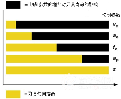圖2 .切削參數(shù)對(duì)刀具壽命的影響