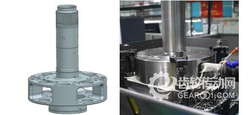 游星架是減速器中的主要零件,其結(jié)構(gòu)復(fù)雜,大小不一的內(nèi)需鉆孔內(nèi)要安裝齒輪軸等多個(gè)轉(zhuǎn)動件。游星架底部圓柱形結(jié)構(gòu)的外圍有4個(gè)窗口結(jié)構(gòu),需要從實(shí)體形式的毛坯件開始掏空加工,不僅加工余量非常大,其對表面質(zhì)量的要求也十分嚴(yán)格。