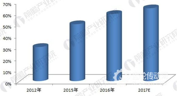 根據前瞻產業研究院數據顯示,近年來,我國自動變速箱在汽車市場的份額快速上升,由2012年的30%左右上升至2016年的59%左右。根據我國汽車變速箱發展趨勢,預計2017年自動變速箱市場份額有望進一步上升至64%,并在將來成為我國汽車變速箱的主流趨勢。