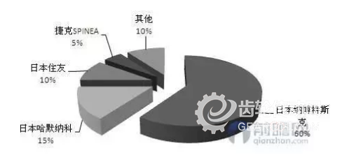 工業機器人市場的發展帶來了機器人減速機市場需求的增長,但從全球的市場競爭格局來看,日本企業把控了80%以上的市場份額,可謂是機器人減速機領域的絕對霸主,而其中僅納博特斯克這一家公司的市場份額就已經達到了60%左右。