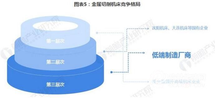 目前我國金屬切削市場形成了三個層次的競爭格局。第一層次由極少數國外高端機床企業組成,如德國、意大利等,這類企業的金屬切削產品技術含量高、價格昂貴,處于機床行業的高端地位;第二層次由中、高端生產企業組成,主要包括上海機床廠有限公司、以及美國Capco、無錫機床股份有限公司、貴陽險峰機床有限責任公司等企業;第三層次由數量眾多的低端制造廠商組成,該層次內企業一般規模較小、無核心技術,產品單一、同質化嚴重,競爭非常激烈。