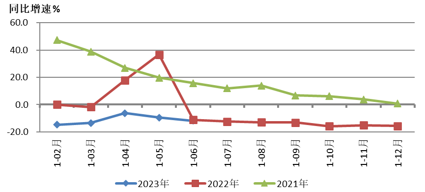 圖1是2023年1-6月和2022年、2021年重點聯系企業營業收入同比增速情況的對比。