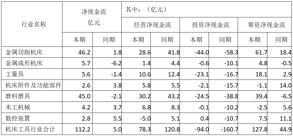 2022年重點監測的上市公司經營活動產生的現金流均表現為凈流入,但凈流入金額同比減少了35.2%。各分行業中實現同比增長的僅有機床附件及功能部件。