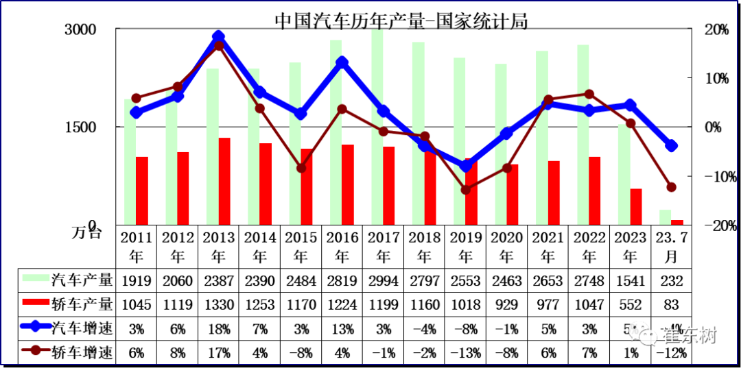 2023年7月汽車生產232萬臺,同比下降4%;新能源汽車生產75萬臺,同比增25%,滲透率32.4%,這是很高的增長。