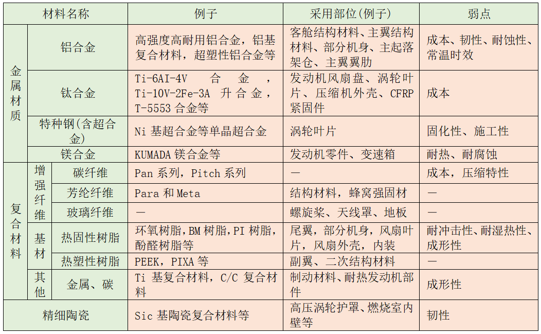 飛機(jī)和發(fā)動(dòng)機(jī)制造商根據(jù)飛機(jī)和發(fā)動(dòng)機(jī)的整體安全性、機(jī)艙舒適性、輕量化、成本、可維護(hù)性和可成形性等因素來確定各個(gè)部件的材料。